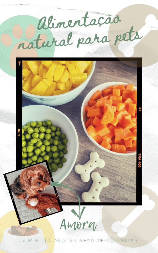 São os mesmos alimentos usados na alimentação humana, porém sem uso de cebola, alho, açúcar e sal.