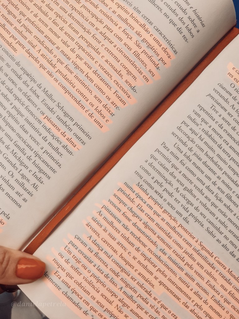 “Não importa a cultura pela qual a mulher seja influenciada, ela compreende as palavras mulher e selvagem intuitivamente. Quando as mulheres ouvem essas palavras, uma lembrança muito antiga é acionada, voltando a ter vida. Trata-se da lembrança do nosso parentesco absoluto, inegável e irrevogável com o feminino selvagem, um relacionamento que pode ter se tornado espectral pela negligência, que pode ter sido soterrado pelo excesso de domesticação, proscrito pela cultura que nos cerca ou simplesmente não ser mais compreendido. Podemos ter-nos esquecido do seu nome, podemos não atender quando ela chama o nosso; mas na nossa medula nós a conhecemos e sentimos sua falta. Sabemos que ela nos pertence; bem como nós a ela”