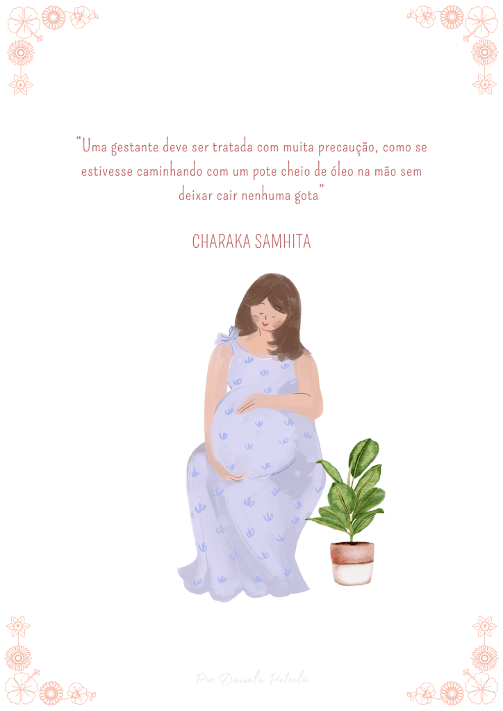 - Dinacharya (rotina diária) da gestante.